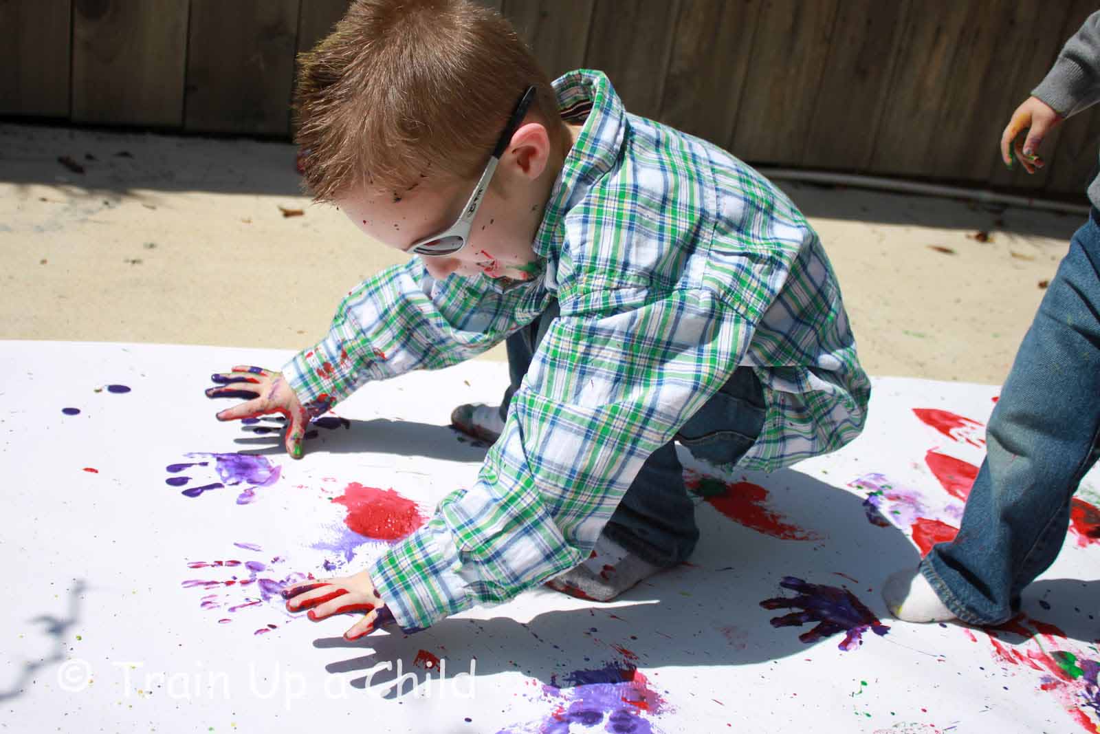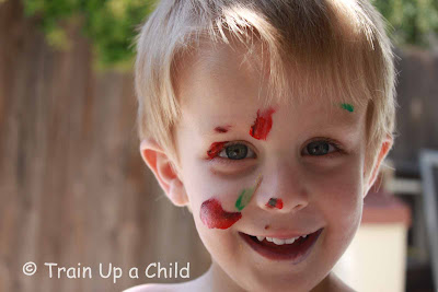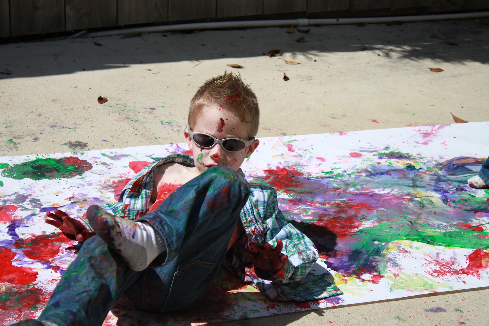 Okay, this wasn't exactly what I had in mind when I brought the paint outside for the boys:
